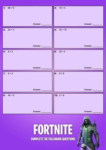 Fortnite math worksheets free